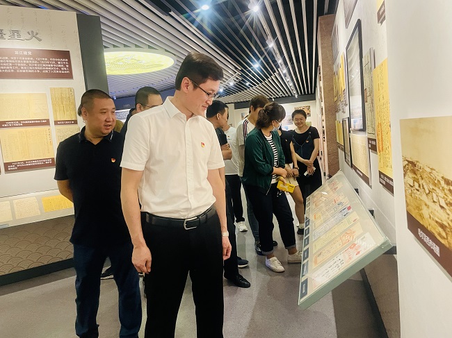 党员干部跟随讲解员进入“黑龙江历史记忆”档案展览厅,沿着时间的脉络,观看一份份珍贵的档案文献和历史照片,认真聆听那一幅幅泛黄图片、一件件珍贵展品背后龙江儿女不畏艰险、坚定信念、爱党爱国的感人故事,真实再现了龙江人民在中国共产党领导下英勇斗争的辉煌历程。随后,大家参观“风展红旗——红色历史档案展”,展览共分为“播撒火种 革命兴起”“奋起抗战 艰苦卓越”“巩固后方 支援解放”三个部分,在一张图片、一段故事中揭秘罕为人知的历史细节,解读百年大党的胜利密码。